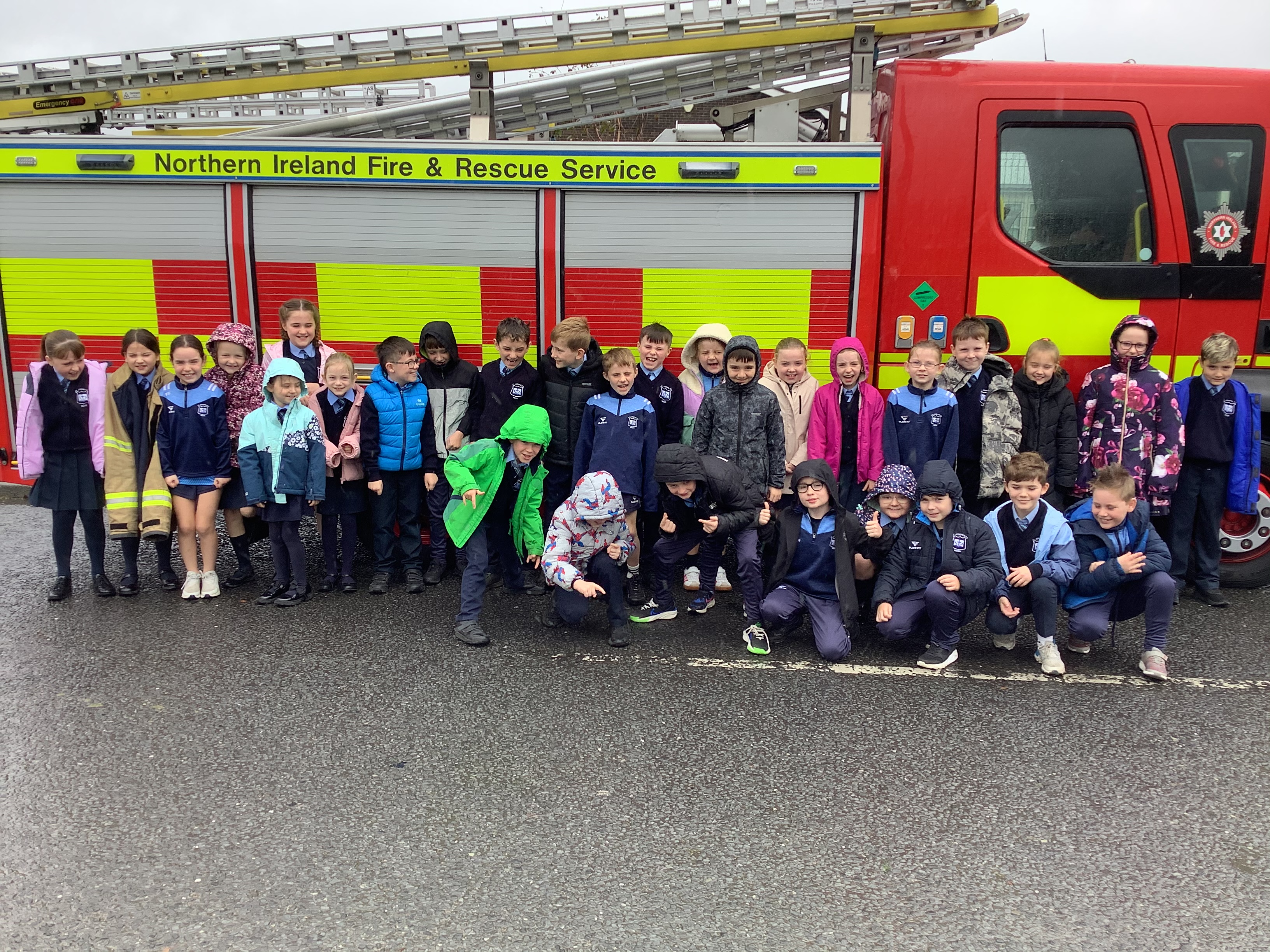 On Tuesday 21st October we had a visit from the local fire service. The Firemen gave the children an important message about fire safety in our homes. The Primary 5 class also got to go outside and see the fire engine and learn a bit about how it works. They also got safety packs with lots of activities to complete.